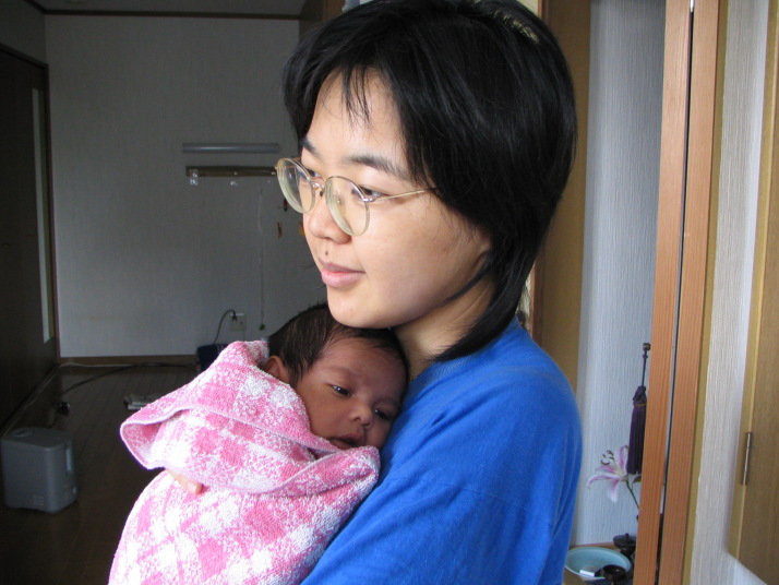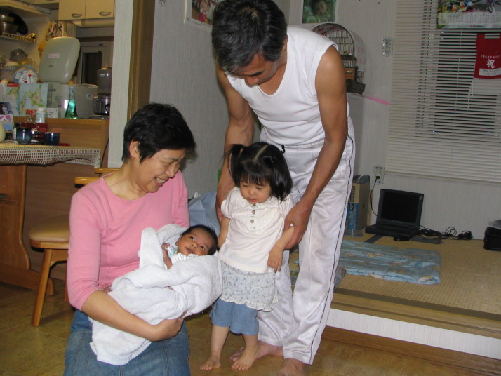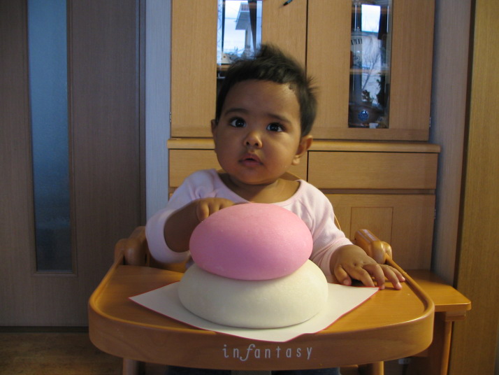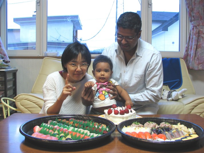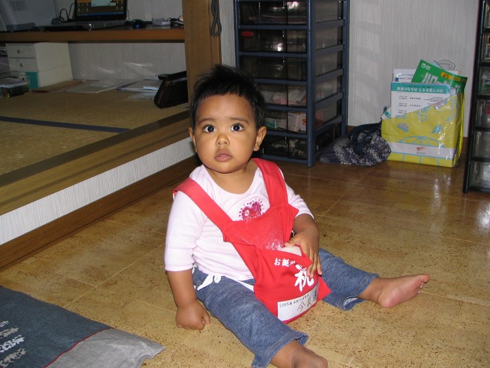 April 2006: Turned One..Had to carry "mochi" (rice cake). They all had sushi.