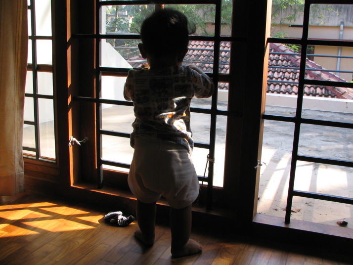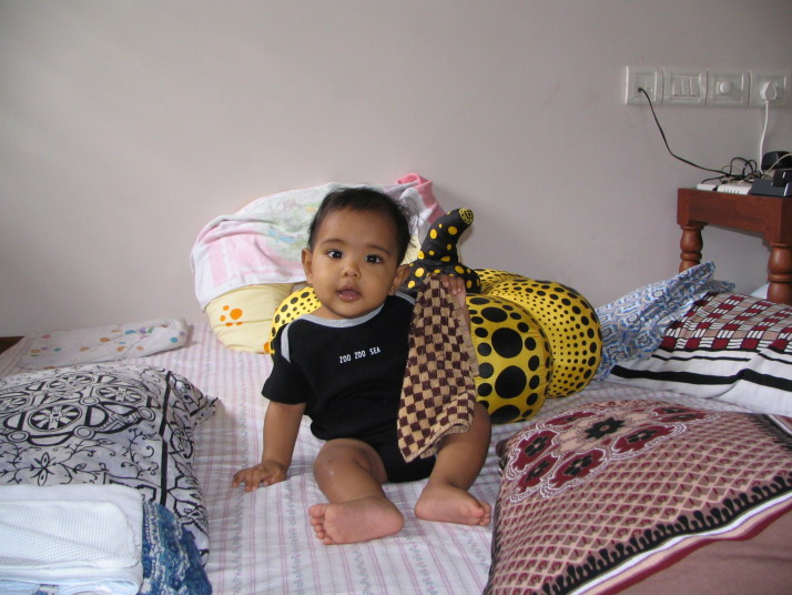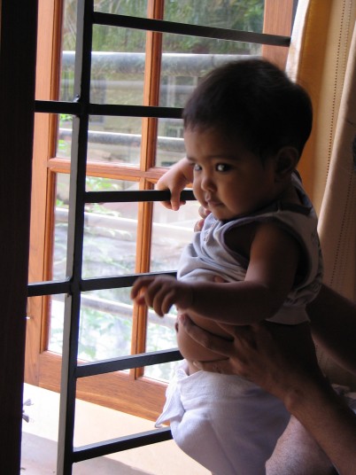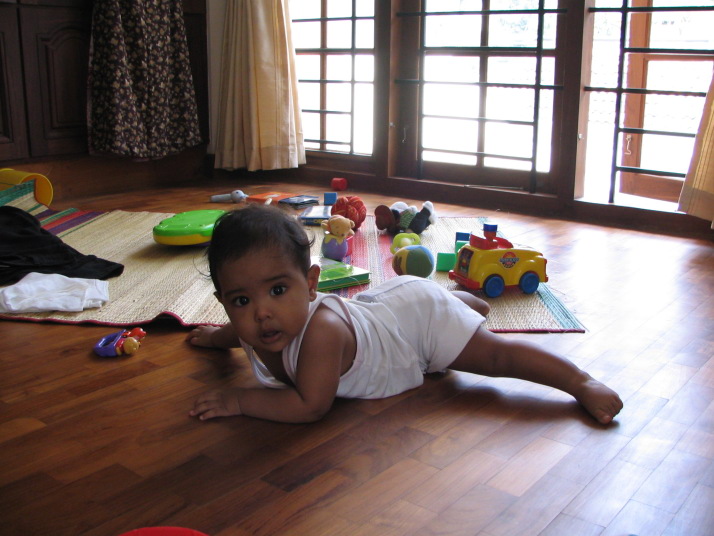 In Trivandrum. Uncle Robin came visiting. We went on a boat trip. We went to Kovalam beach. In the meantime, I also managed to stand up.