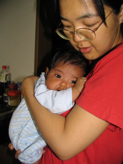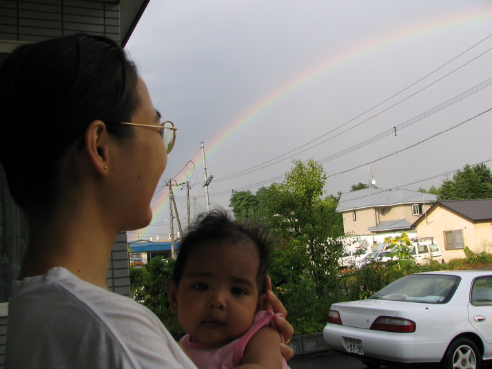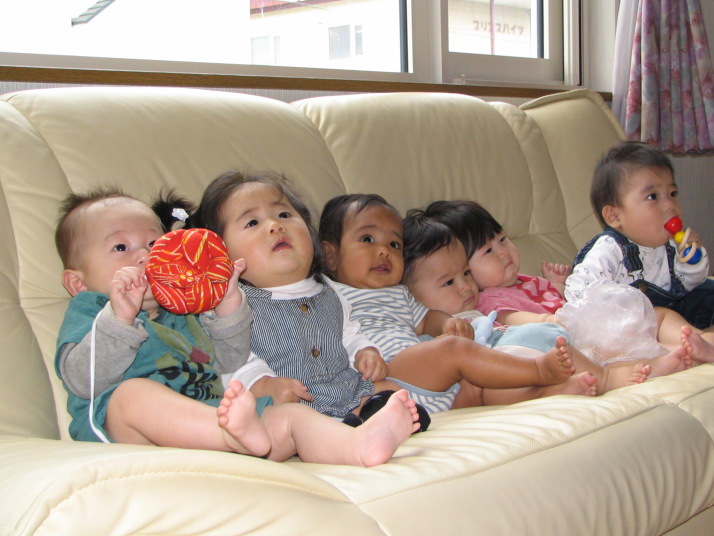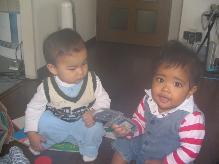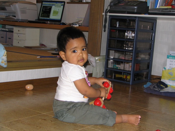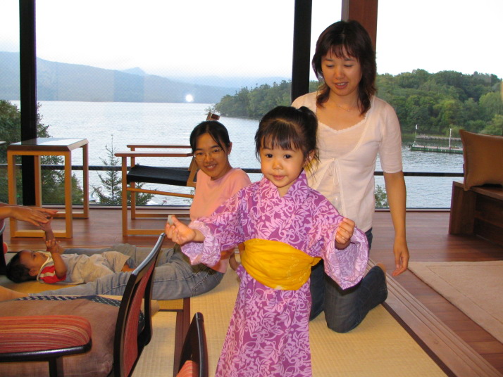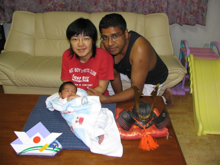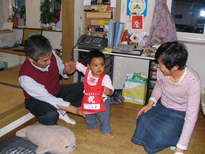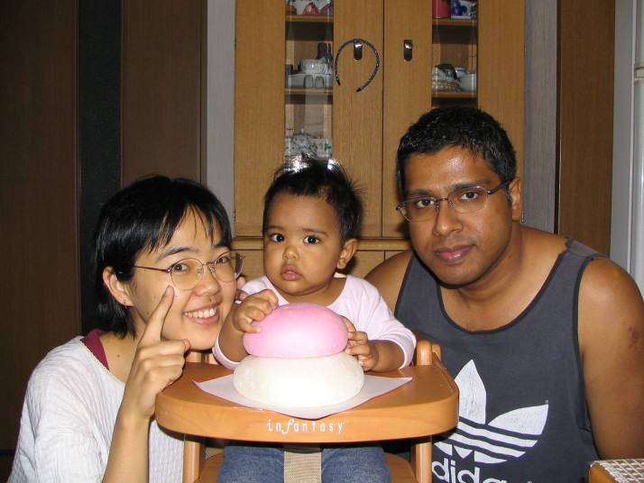 April 2006: Turned One..Had to carry "mochi" (rice cake). They all had sushi.