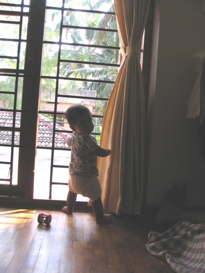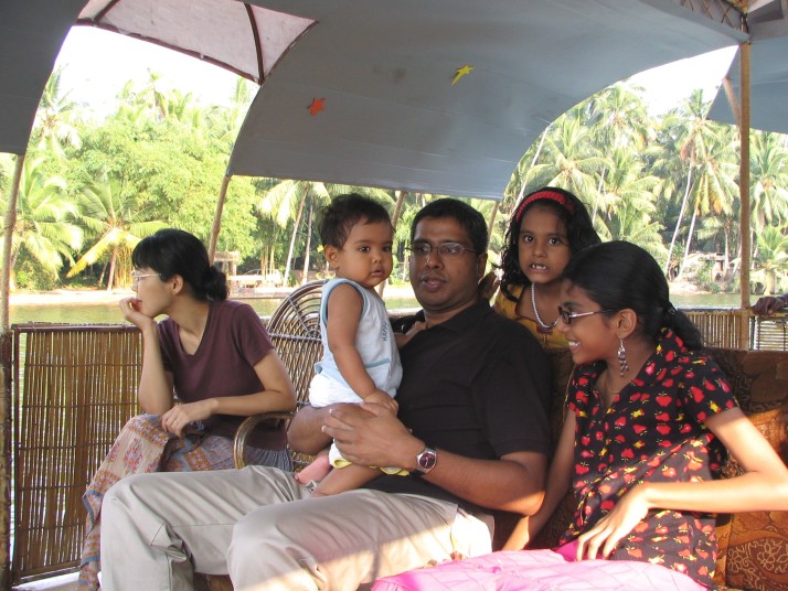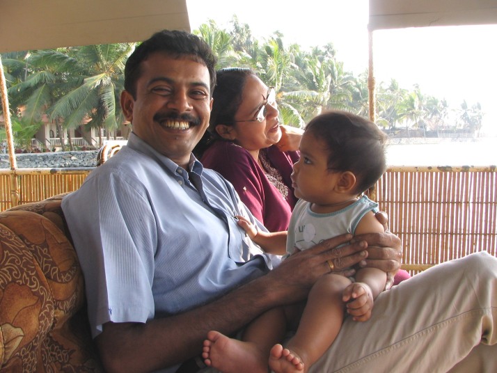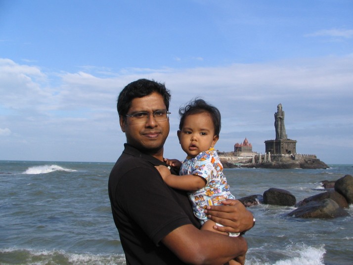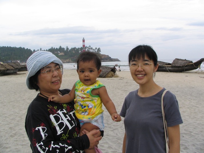 In Trivandrum. Uncle Robin came visiting. We went on a boat trip. We went to Kovalam beach. In the meantime, I also managed to stand up.